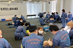 地域イベント・学校・企業に赴き、消火器の取り扱い、心肺蘇生法などの防災指導を行います。また、各種訓練も実施しており