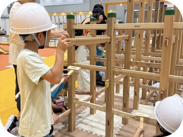 子どもたちで協力して、木のジャングルジム「くむんだー」をつくる体験です!