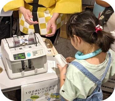 ②100枚ピッタリを目指し模擬投票用紙をとってみて、開票の際に使用する計数機を使って何枚かカウントしてみましょう!