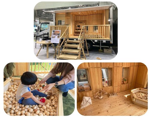 木のぬくもりいっぱいの「木育トラック」が木のおもちゃを載せてやってきます。