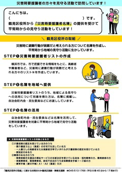 自治会・町内会、民生委員の皆さまが、平常時からの見守りで災害時要援護者を訪問される際に、ご説明用のチラシを作成しました。